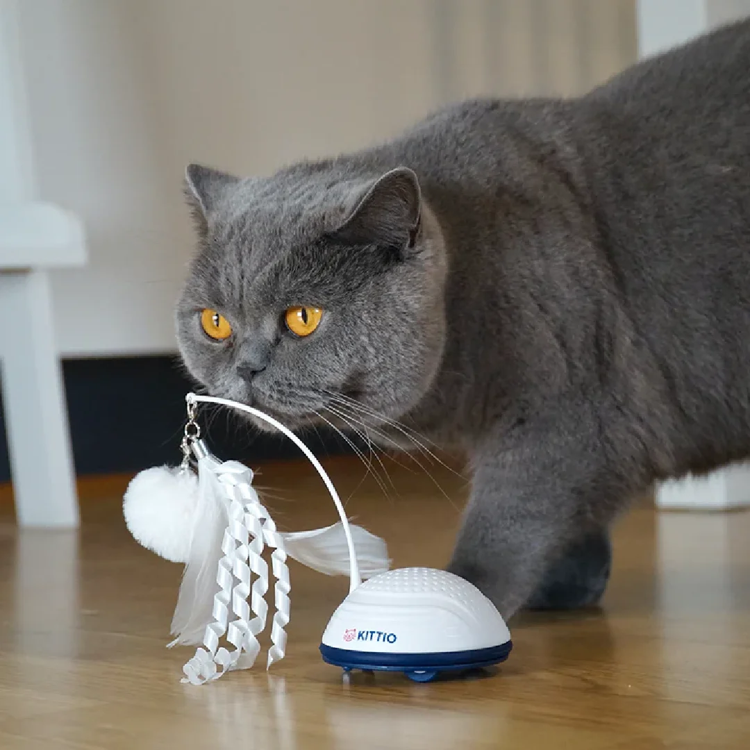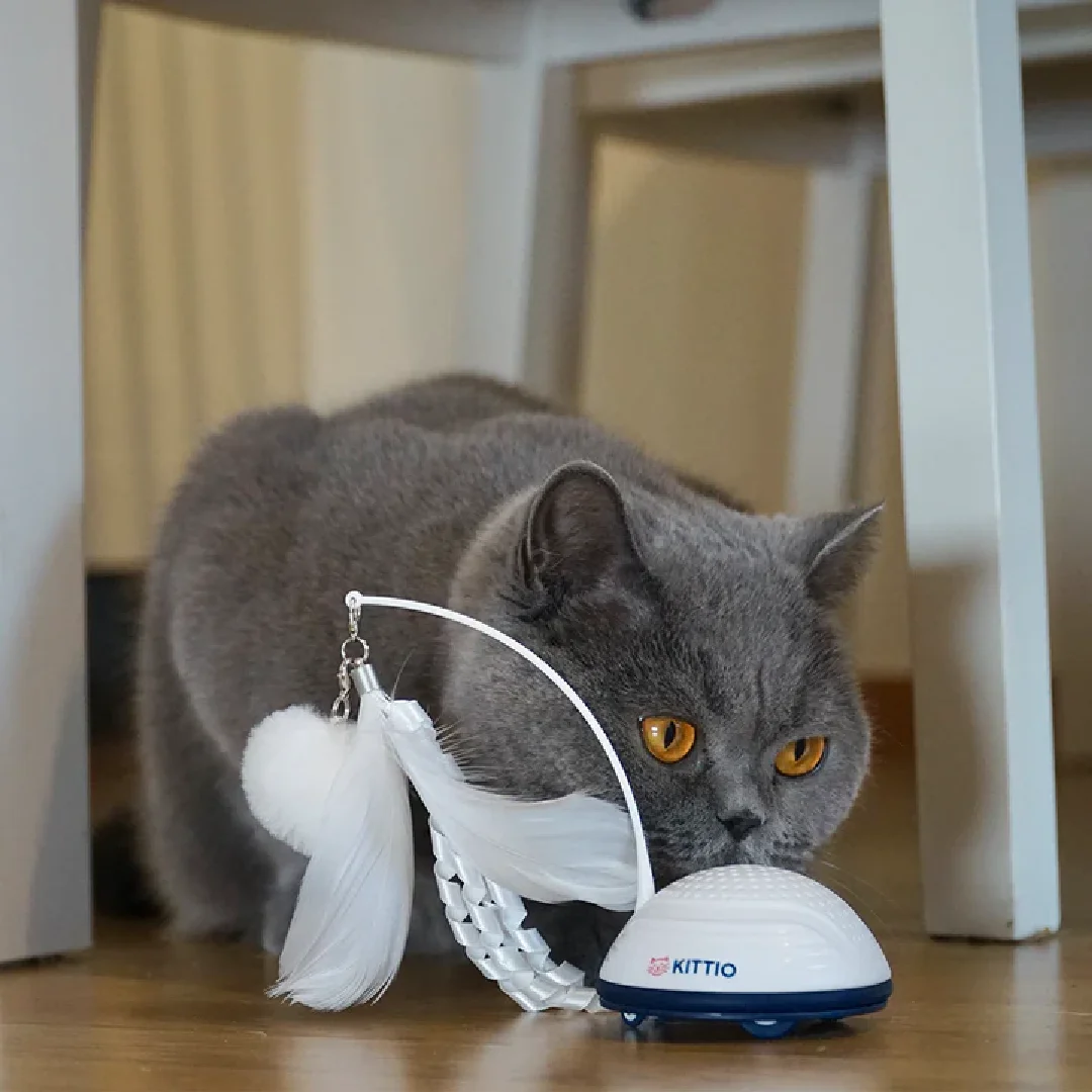 El juguete Frisky Feather puede mantener entretenidos incluso a los gatos más tranquilos durante horas. Se activa cuando tu gato empieza a tocarlo y empieza a huir, moviéndose rápidamente por la habitación. Equipado con múltiples sensores inteligentes, es perfecto para mantener ocupados a los gatos y estimular sus instintos de caza.